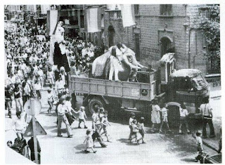 | Portant l'elefant Bodum a la plaça del Domènech |